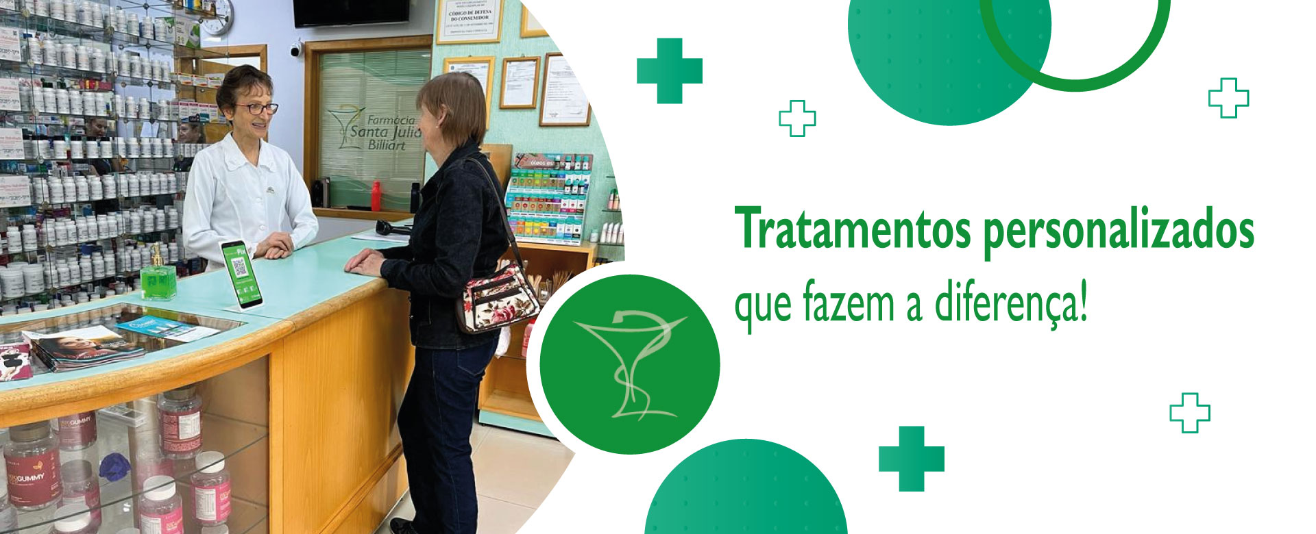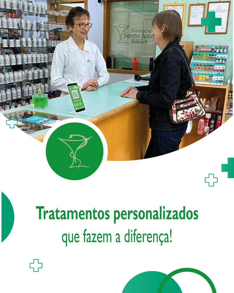 Na Farmácia Santa Júlia, acreditamos que cada pessoa é única — e o seu tratamento também deve ser. Nosso compromisso vai além de manipular medicamentos: oferecemos atendimento humanizado, com foco na orientação e educação do paciente, buscando sempre compreender e atender às reais necessidades de forma personalizada.